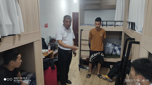 為了提高我校藝術生的藝術修養(yǎng)和審美創(chuàng)作能力,2022年7月7日至7月22日,我校300余名藝術生在學校專業(yè)老師的帶領下,在皖南宏村寫生基地開展了暑期夏令營藝術研學活動。學校對此次寫生活動高度重視,孫冬青校長帶領學校中層領導親自前往活動基地看望帶隊教師和同學們,重點強調了安全問題、學習問題及生活問題。孫校長深入到住宿的賓館了解學生的住宿情況,親臨就餐的酒店后廚察看食材原料及衛(wèi)生情況,深入藝術課堂,對受邀前來進行藝術指導的安師大音樂學院田園、單泓雯、薛軍、劉麗等教授表示感謝!對辛勤工作的一線藝術教師表示慰問。領導們的慰問讓全體師生倍感溫暖。